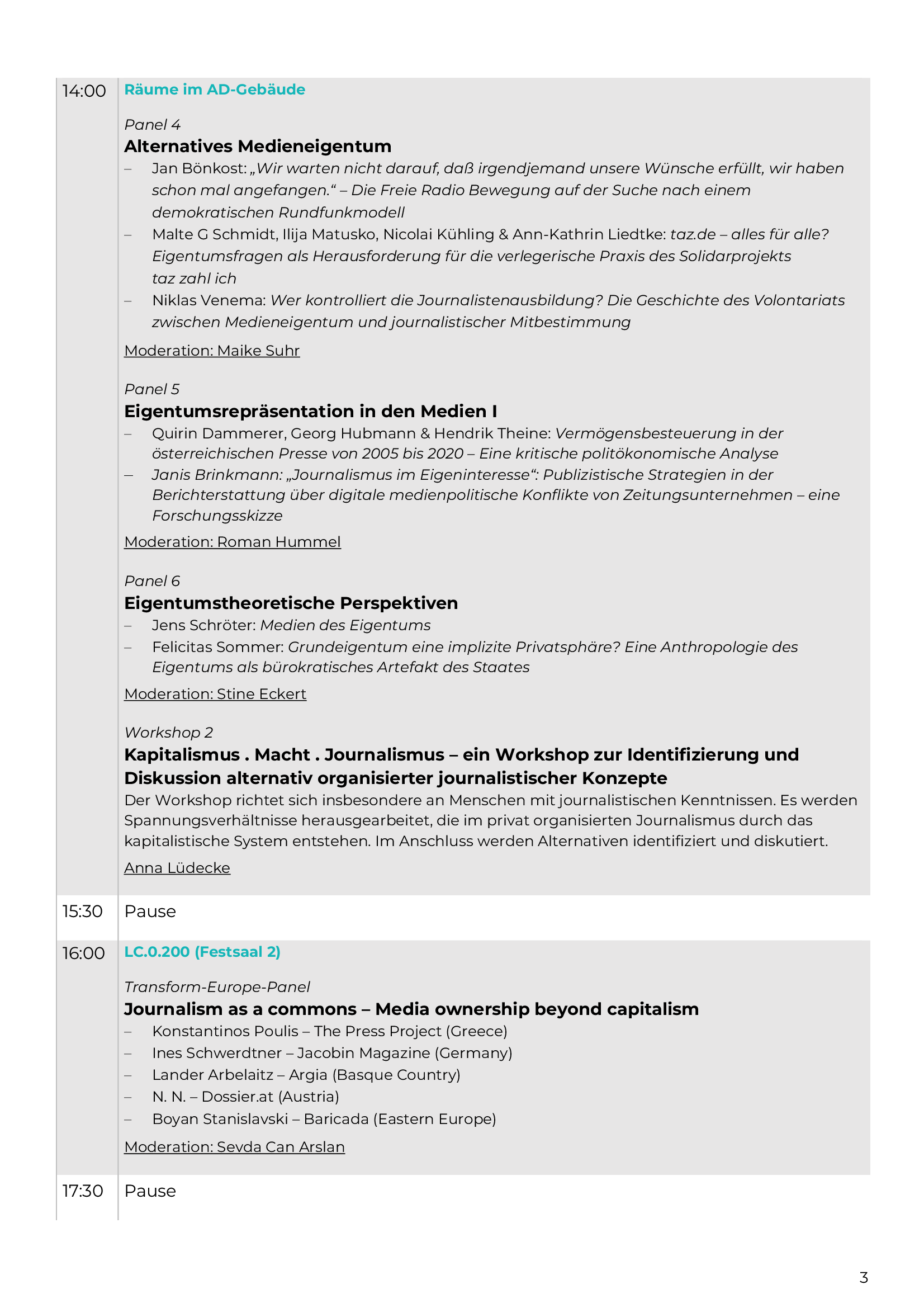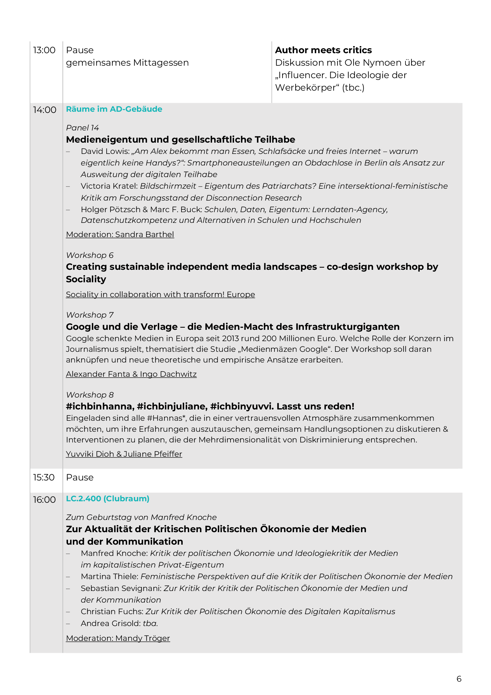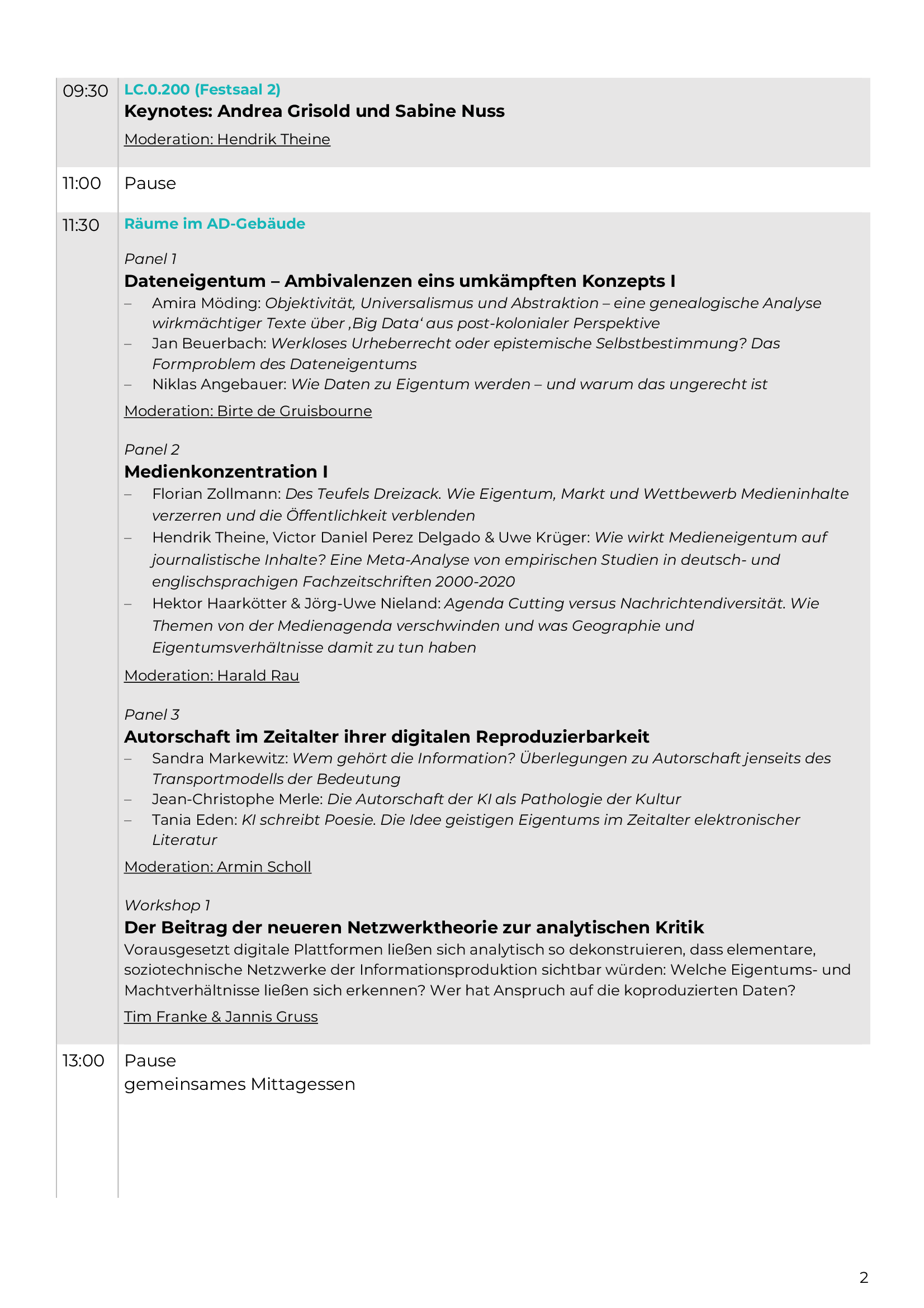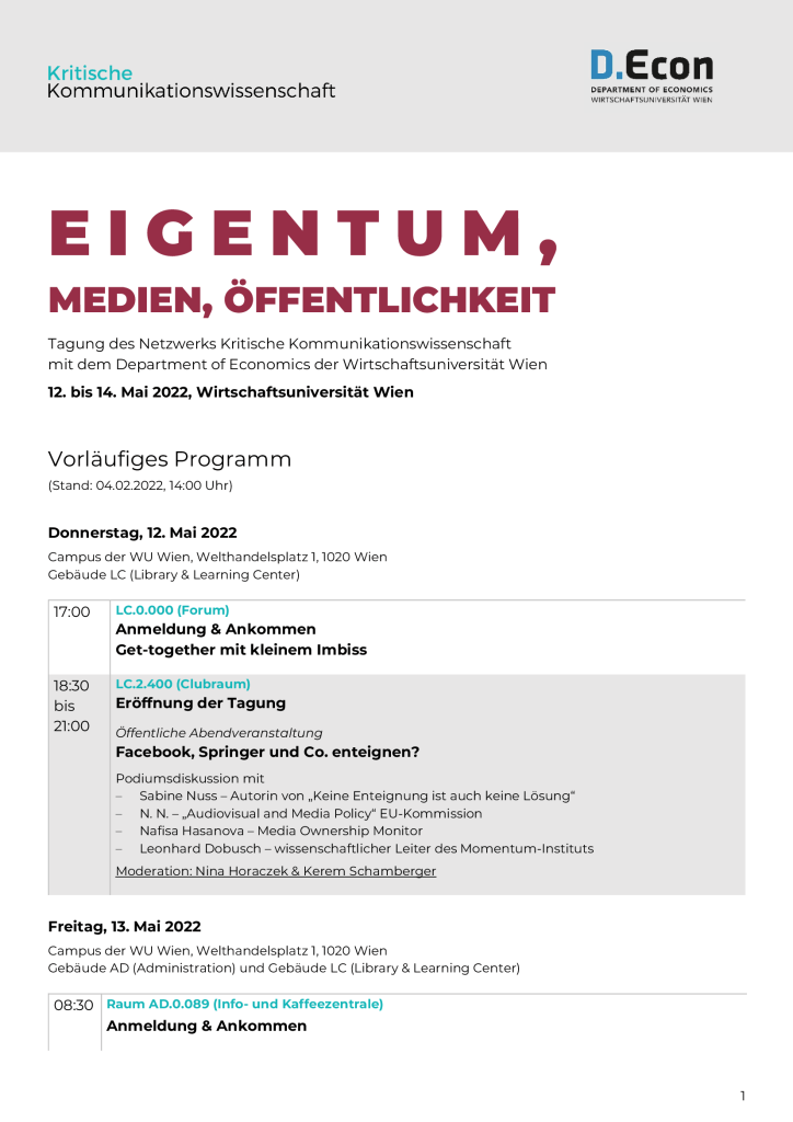 Es ist so weit: Heute können wir mit euch das neue Programm für unsere Tagung Eigentum, Medien, Öffentlichkeit teilen.